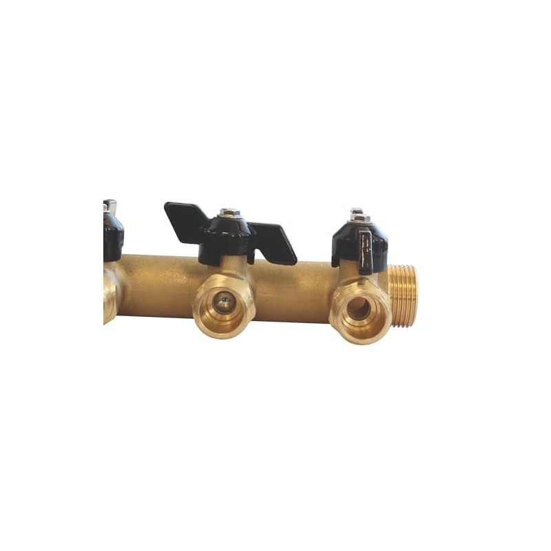 • Plumbing Distributor, Brass Raw Flat Male-Female 20/27, 4 Branches, Equipped with Shut-off Valves 1/4 Turn, Male to Reach 15/21