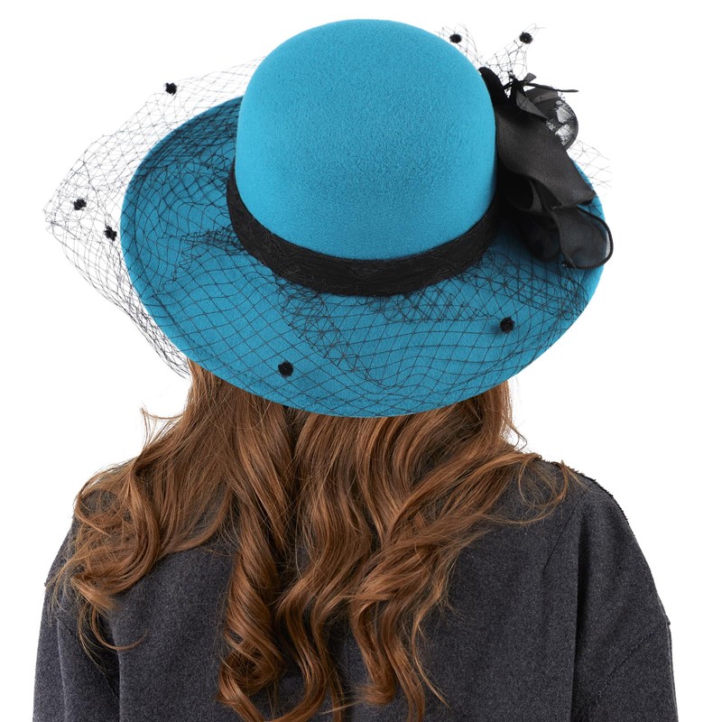 Sombrero de lana de fieltro para mujer, estilo clásico, con lazo, A-azul, Talla única