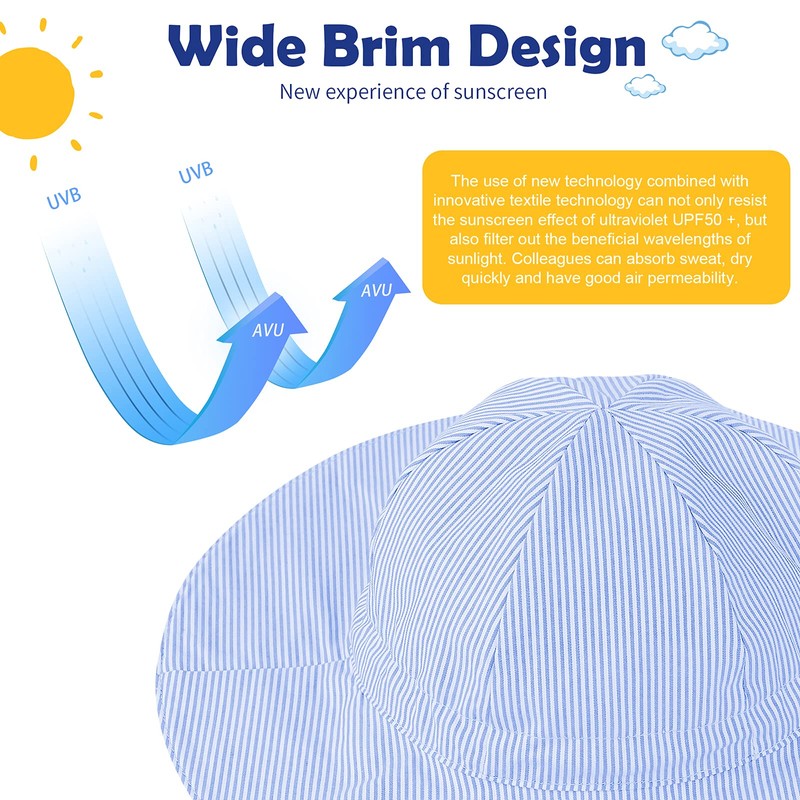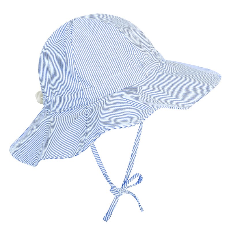 Sombrero de sol para bebé y niña, con UPF 50+ para verano, playa, con ala ancha, Rayas azules, 12-24 Meses