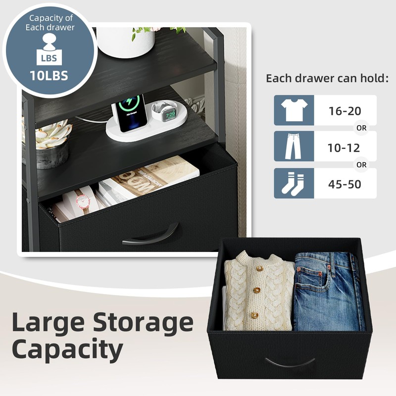 - 【Multi-functional Storage】This dresser features foldable storage drawers. Each fabric drawer offers large storage space, perfect for organizing clothes, toys, socks, underwear, scarves, blankets and other accessories. The drawers are made of PVC fabric, lightweight and durable, and won't pinch hands, also safe for to use
