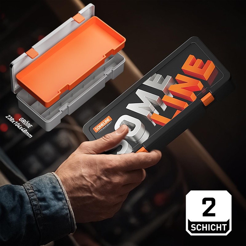 - Tragbares Kit: Speziell entwickelte doppelschichtige tragbare Aufbewahrungsbox fr einfachen Transport und Organisation, die dafr sorgt, dass die Werkzeuge ordentlich und leicht zug?nglich bleiben, ideal fr professionelle Techniker und Heimwerker