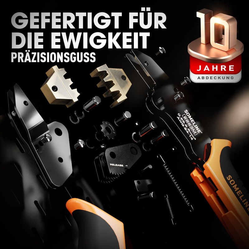 - Crimpwerkzeug: Mit einem automatisch einstellbaren Ratschenmechanismus, einer einstellbaren Arretierung und der Funktion zum L?sen von Druckpunkten. Das Crimpwerkzeug ist zum Crimpen von 0.25-2.5 mm2 Flachsteckhlsen Verbinder und Kabelschuhe