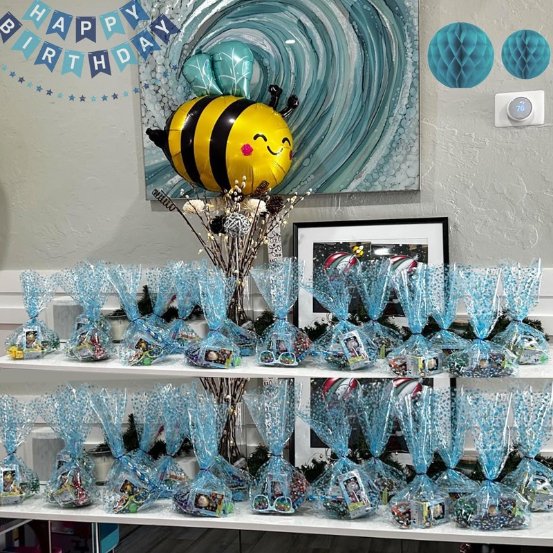 - What You Will Get:50 pcs 12X 16 inch blue star printed cellophane treat bags, a wide bottom gusset ,made with 1.4 Mil thickness plastic single side ,and 100pcs 4.7 in colorful teist ties , these bags are perfect for dressing up treats, bakeries, goodies, crafts, and homemade DIY creations. They’ll brighten up your parties and events or boost your sales