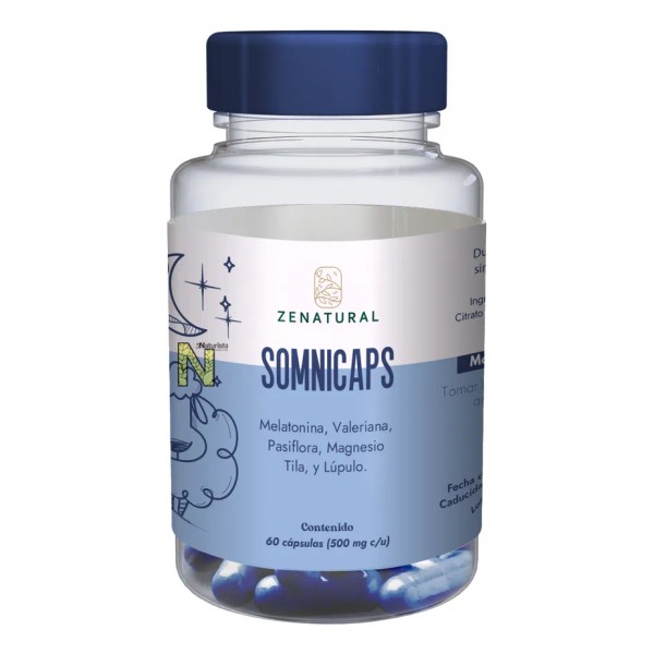 Somnicaps (60 cápsulas) de Zenatural es un suplemento natural que favorece el descanso y el bienestar emocional. Su fórmula contiene Melatonina, que regula el ciclo sueño-vigilia; Kava Kava, una planta ancestral conocida por sus propiedades ansiolíticas y relajantes; y Magnesio, esencial para el sistema nervioso y muscular 🧠💪.