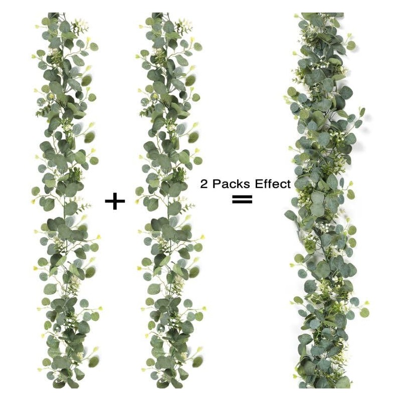 - 【Lush and Natural Looking】: Our eucalyptus garlands mixed eucalyptus leaves and boxwood leaves together, which makes the whole vine look more realistic, dense and filled with rich layers. Gypsophila is hidden in the leaves, adding bright spots to the vines. Never wilt and no maintenance require, our greenery garland will provide a natural and elegant look for your home all year around.