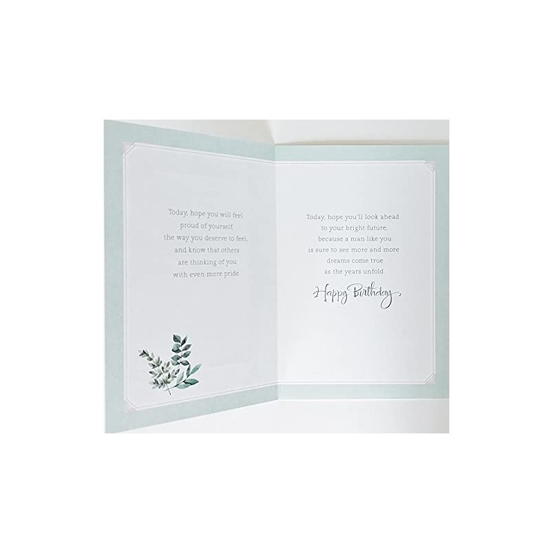 - Inside: Today, hope you will feel proud of yourself, the way you deserve to feel, and know that others are thinking of you with even more pride. Today, hope you'll look ahead to your bright future, because a man like you is sure to see more and more dreams come true as the years unfold. Happy Birthday