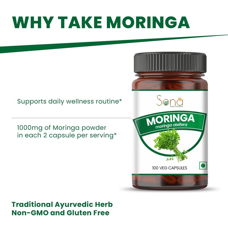SONA Moringa Capsule - 1000mg Veg Capsules 100 Count (Pack of 1)