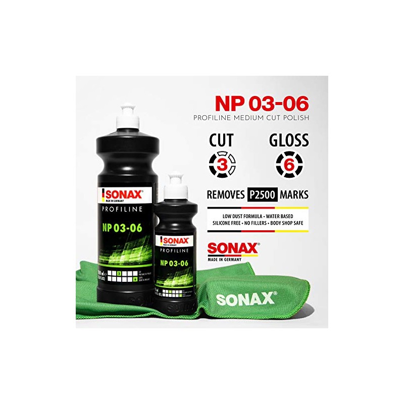 - REMOVES PAINT DEFECTS - Sonax Nano Polish 03/06 performs light correcting on the front end, and finishes out to a near perfect on the back end, Diminishing abrasive technology allows you to cut light scratches as a compound while finishing as a polish for a near mirror-like finish on the vehicle's paintwork