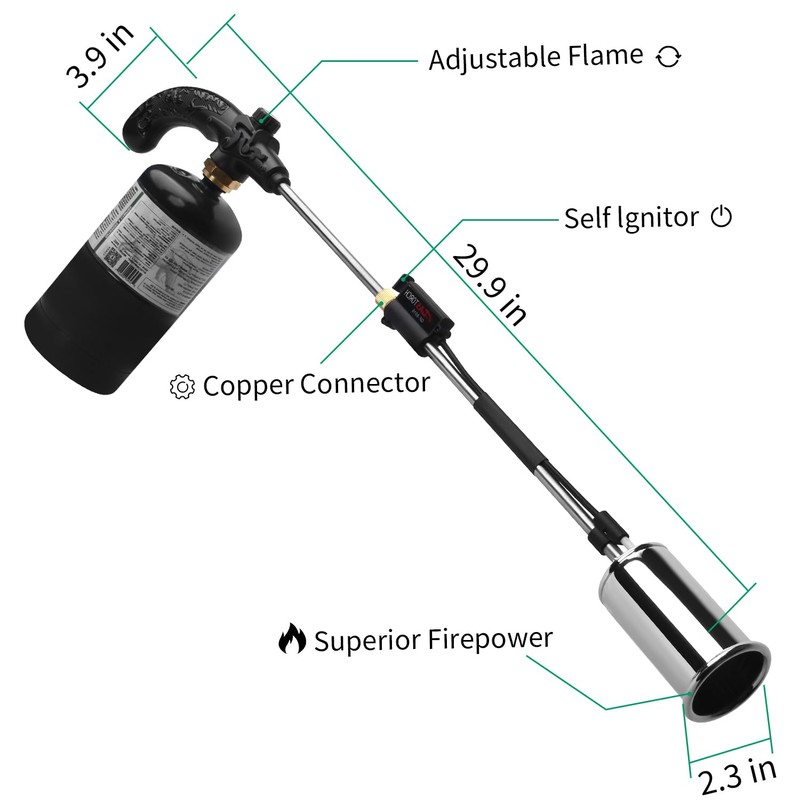 - No Chemical Weeding SolutionThis is a Environmentally Friendly way to solve the weeds between hard to reach crevice efficiently. With the help of this efficient assistant, you can easily and efficiently complete many things. Burn weeds and stumps, melt snow/ice, sear meat or fish, light fires, solder, do wood grain burning, soften asphalt, remove paint from non-flammable surfaces and more with this propane torch,it's ideal for home, garden, farm, industrial and construction use.
