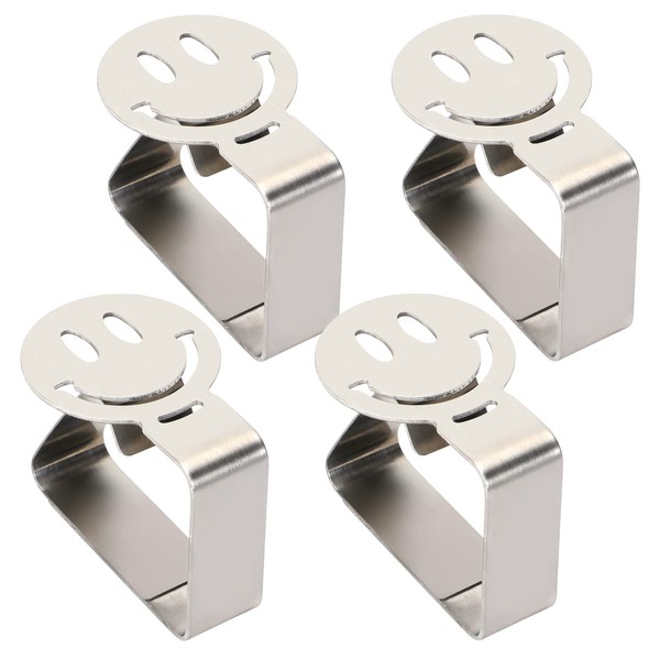 Songaa [4 Pack] Tablecloth Clips, Heavy Duty Stainless Steel Table Clips Table Cloth Cover Clamps Ideal Table Cloth Holders for Restaurant, Wedding, Party, Kitchen (Smiley)