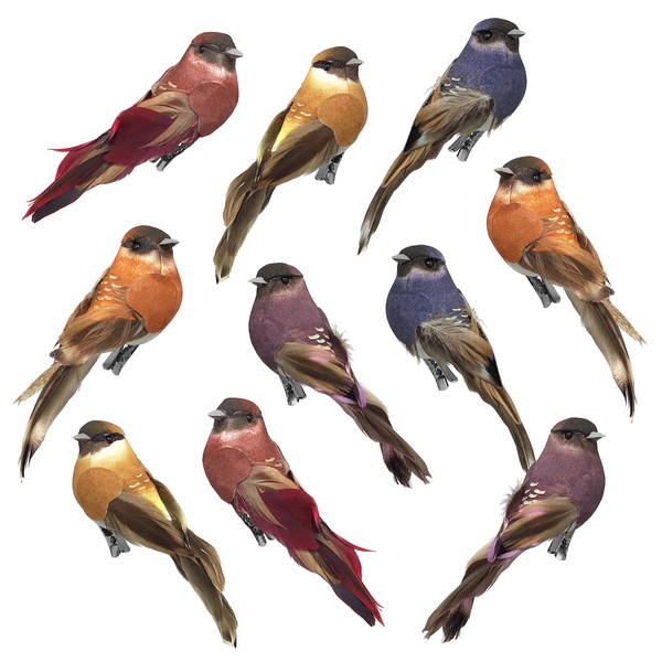 Songbird Christmas Ornaments - Set of 10 Clip Ons - Floral Arrangements and Centerpieces - Crafting Project Accessories 4" H x 1 1/2 W