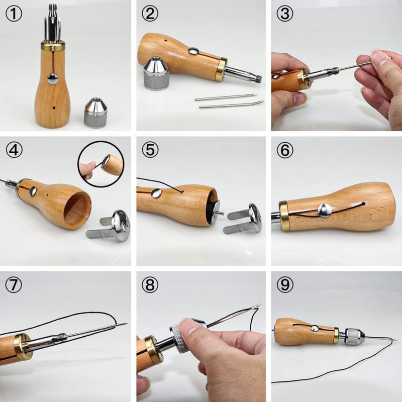 - 【Product Features】Features wood handle great for use at home, camp, farm, and much more. - Small enough to fit in your pocket or tool bag. Can be stored inside the wooden handle when not in use, making it safe and easy to store. With a little practice, it sews a perfect lock stitch every time,just like a sewing machine.