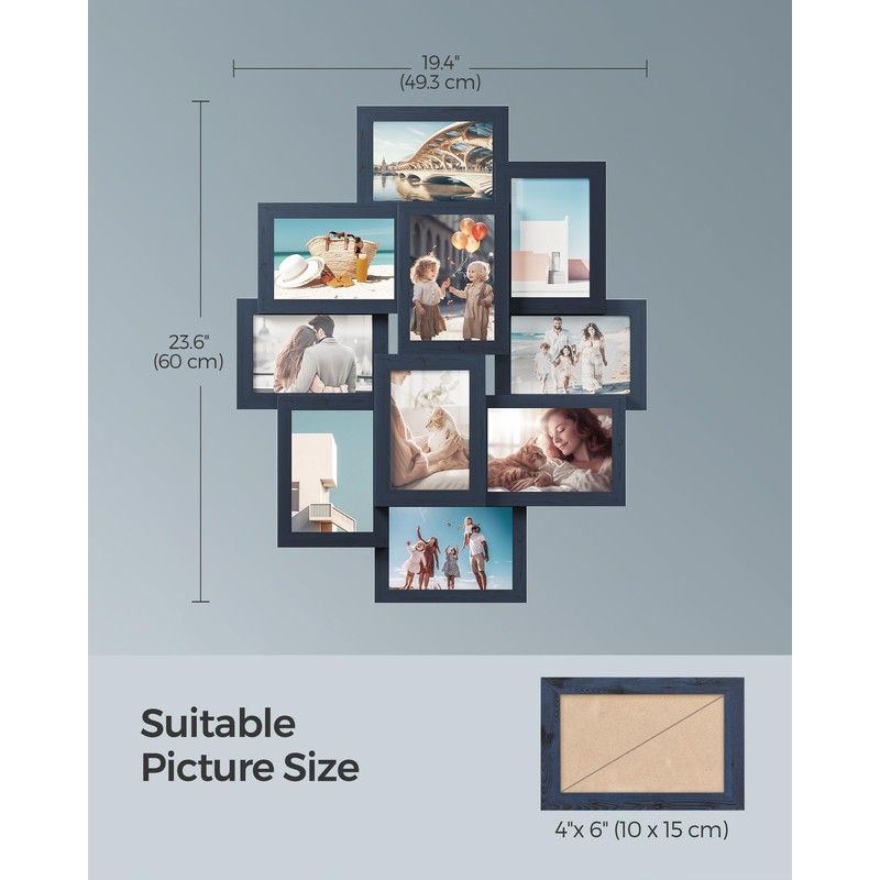 SONGMICS Collage Picture Frames, 4x6 Picture Frames Collage for Wall Decor, 10 Pack Photo Collage Frame for Gallery, Multi Family Picture Frame Set, Glass Front, Assembly Required, Navy Blue