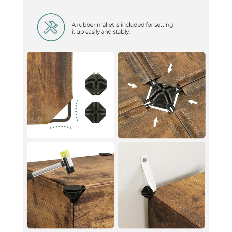 - [Use Many Ways] Store clothing, shoes, or bags in these storage cubes in your living room, entryway, bedroom, or office. Use it as a room divider, make a DIY playpen for your pet, or assemble it into different forms within the limit of the included parts