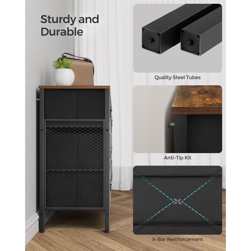 SONGMICS Dresser for Bedroom, Storage Organizer Unit with 7 Fabric Drawers, Chest of Drawers, Steel Frame, for Living Room, Entryway, Rustic Brown and Black ULTS227B01