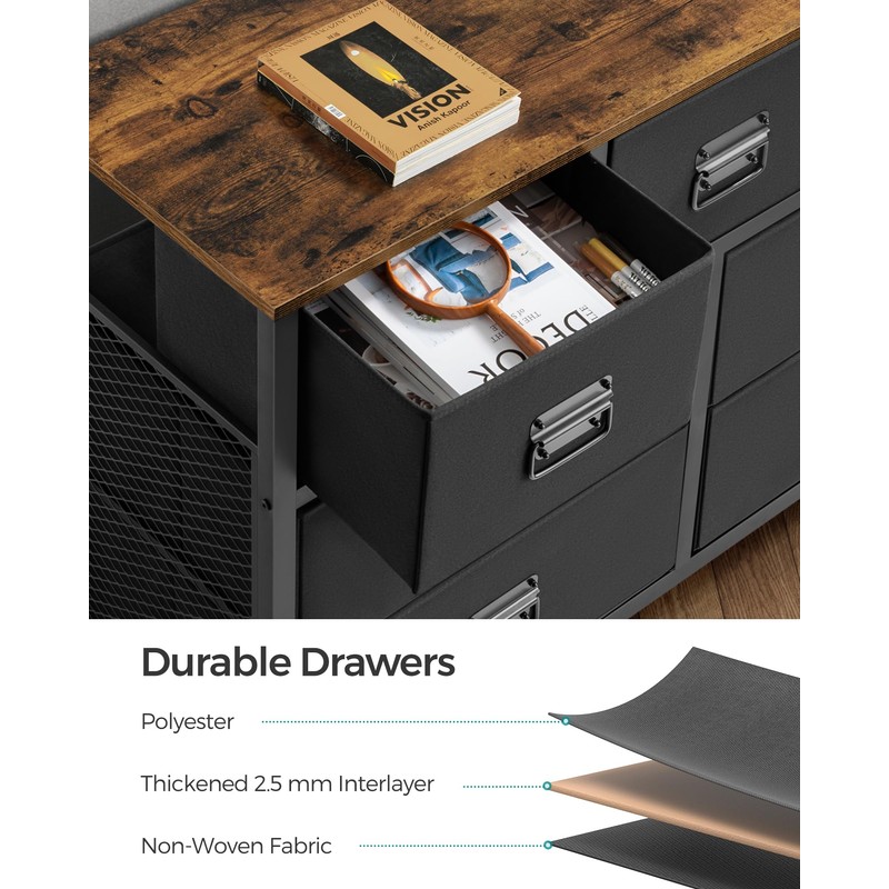 - [Thoughtful Details] Quality materials for long-lasting use, metal pulls on each of the drawers for easy opening, adjustable feet for keeping it stable, and fabric drawers are friendly to young ones—this storage dresser is dedicated to making your life easier