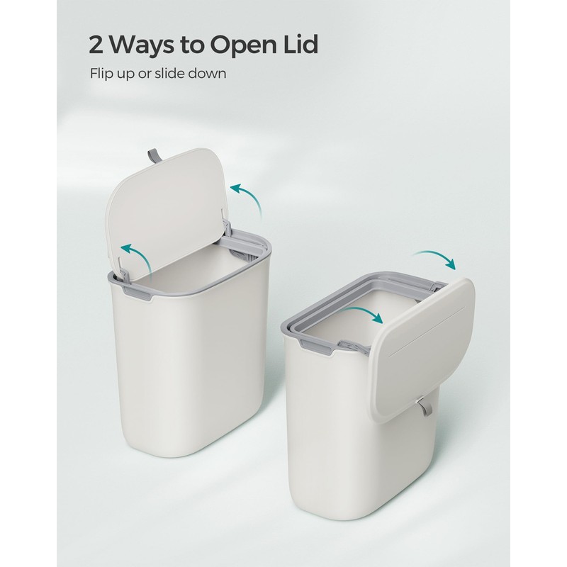 - [2 Ways to Open Lid] Flip the lid up with the handle for daily waste disposal. Or, slide the lid down to keep it fully open to conveniently toss food waste in when you’re preparing a meal