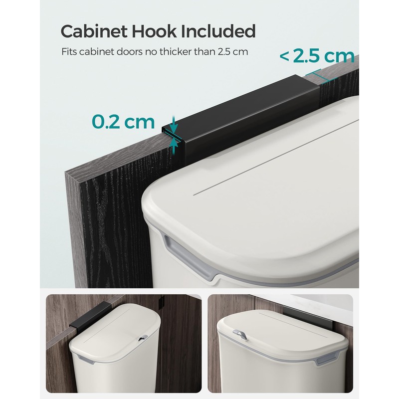 SONGMICS Hanging Trash Can, 9L Kitchen Bin with Lid for Food Waste, Wall Mounted Trash Can, Hanging or Sticking on Cupboard Door, for Kitchen Cabinet, Under Sink, White LTB820W9
