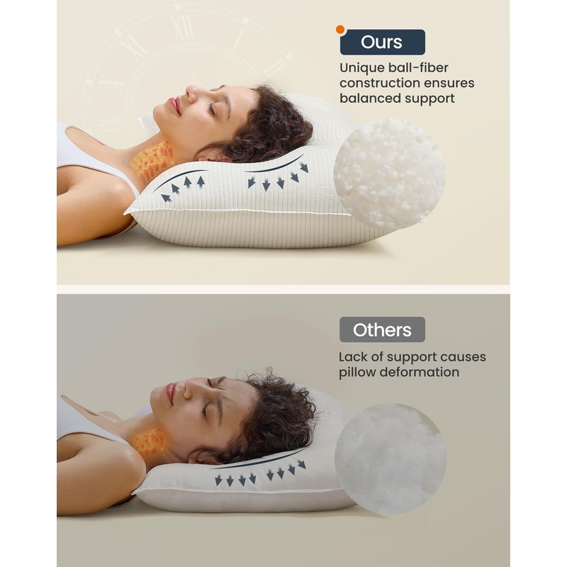- 【SUITABLE FOR ALL SLEEP POSITIONS】With a unique ball-fiber construction, these down alternative pillows ensure even filling distribution and balanced support. Whether you sleep on your back, side, or stomach, they meet your needs perfectly