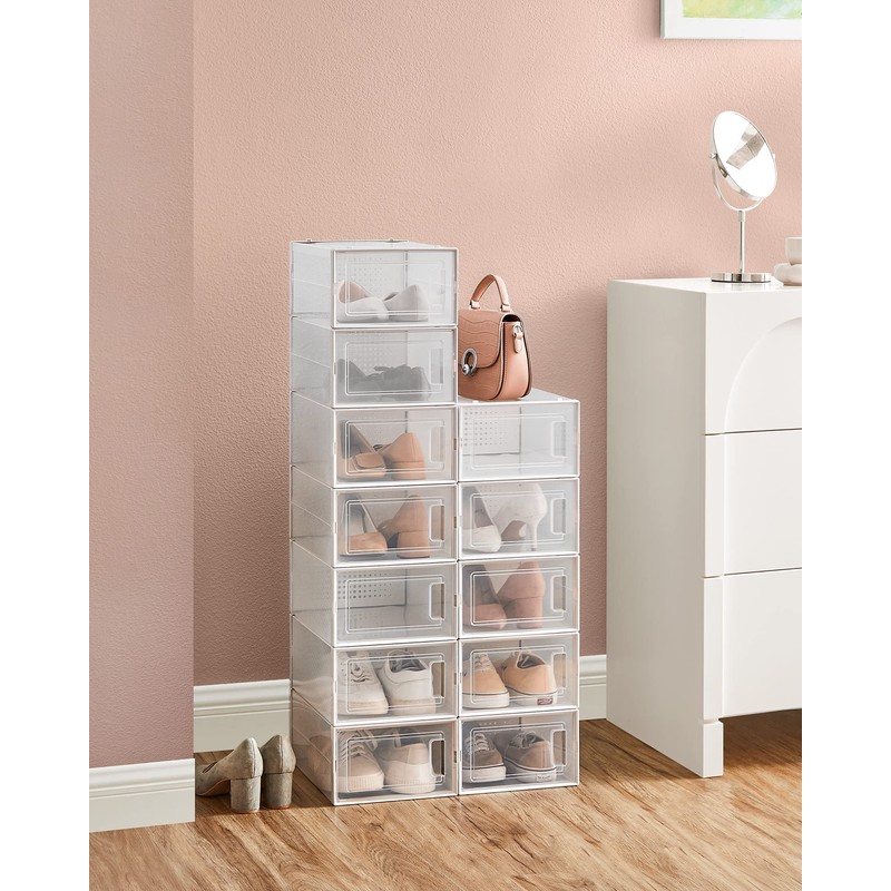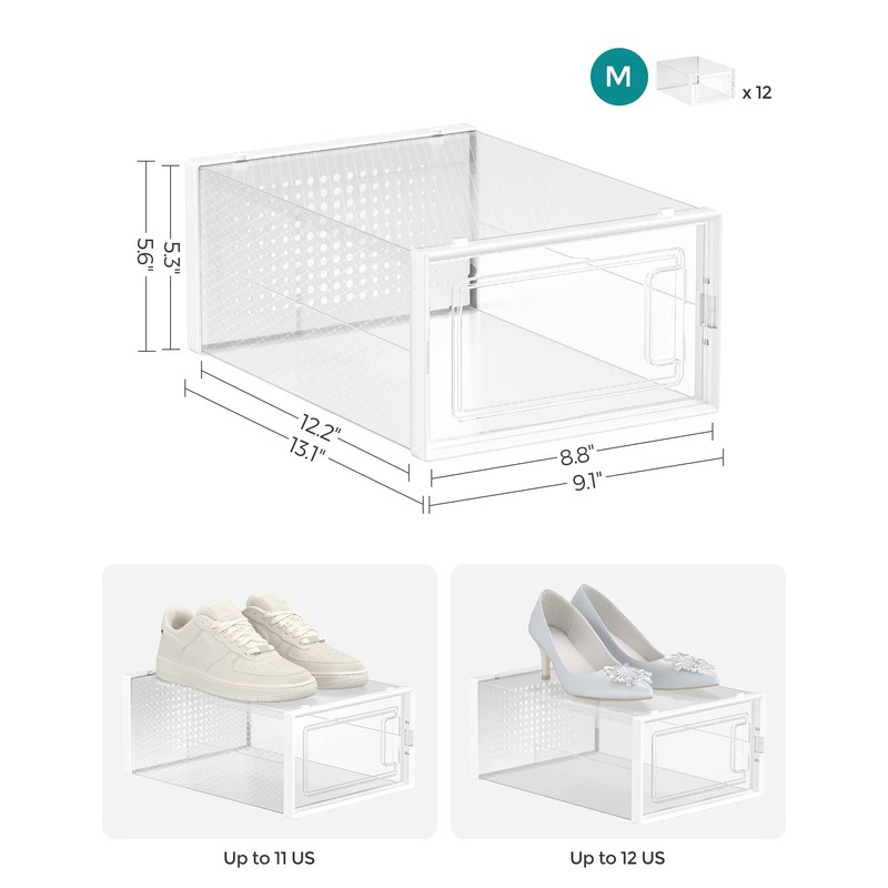 - [Kick Mess to the Curb] If your home is slowly but surely becoming a mess of shoes, why not organize them in this pack of 12 classic shoe boxes with a transparent body and front door? See your whole collection in order