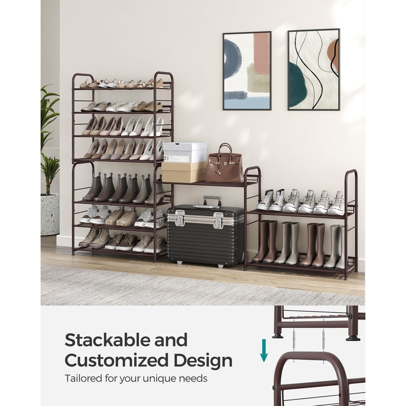 - STACKABLE 4-TIER SHOE RACK 2 sets and more can be stacked vertically for a complete 12-tier shoe rack to make most of the small space for the closet, entryway and corners. Even can be bridged horizontally to expand the unit to realize DIY personalized storage
