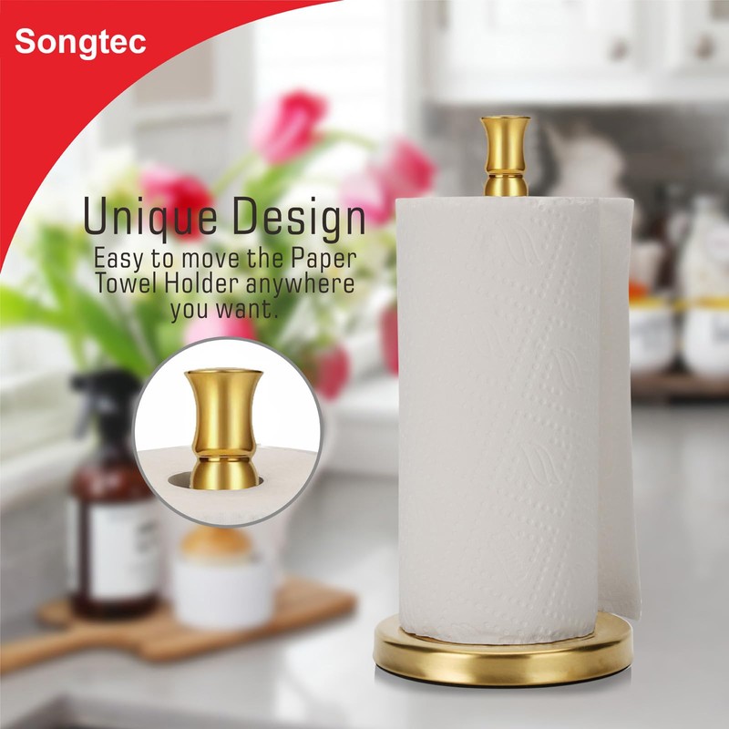 Songtec Gold Paper Towel Holder Stand, Paper Roll Holder Stand Countertop, One Hand Tearing, Fit Paper Towels - Gold