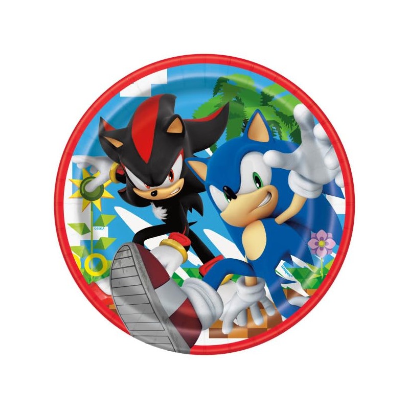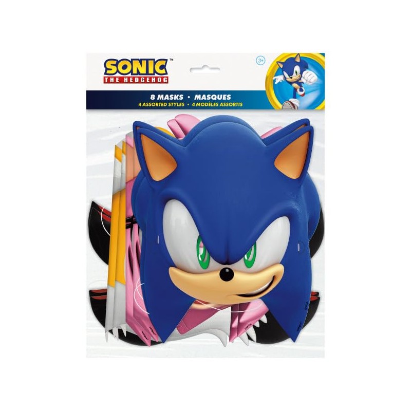 Sonic Birthday Party Supplies Bundle includes 16 Paper Plates 7", 16 Napkins, 1 Table Cover, 16 Party Paper Masks