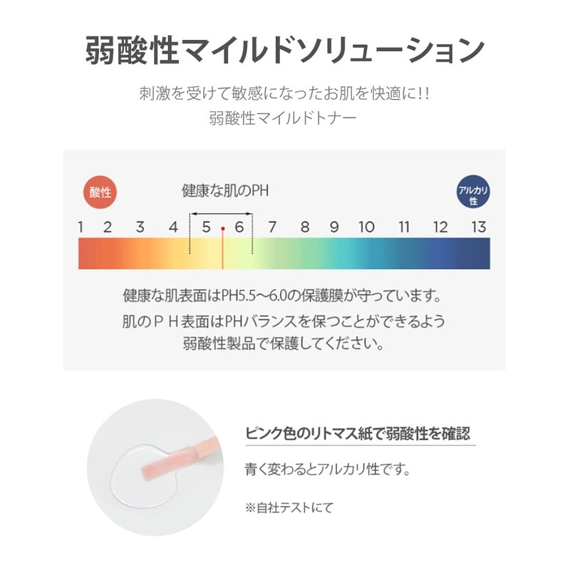 - (Comfortable for sensitive skin with irritations). Weak acidic mild moisture cream: Healthy skin surface is protected with a protective film from PH5.5 to 6.0. The PH surface of the skin is protected with weak acid products to maintain PH balance