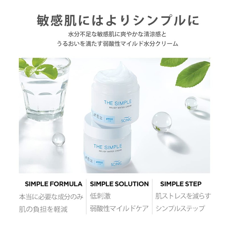 Sonic SCINIC The Simple Relief Water Cream, 2.8 fl oz (80 ml), Genuine Imported Product, Japanese Product, The SIMPLE RELIEF Water Cream, Weakly Acid, Pores, Moisturizing, Hypoallergenic, Sensitive