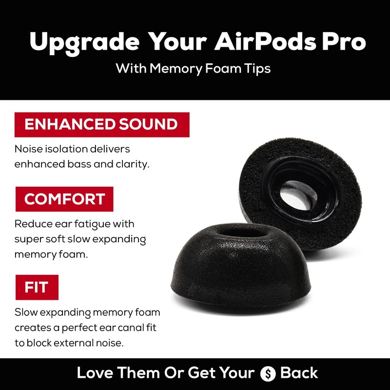 - UPGRADE - Experience a revolution in sound performance by greatly enhancing your listening experience. Upgrade your airpods pro with slow rebound memory foam ear tips.