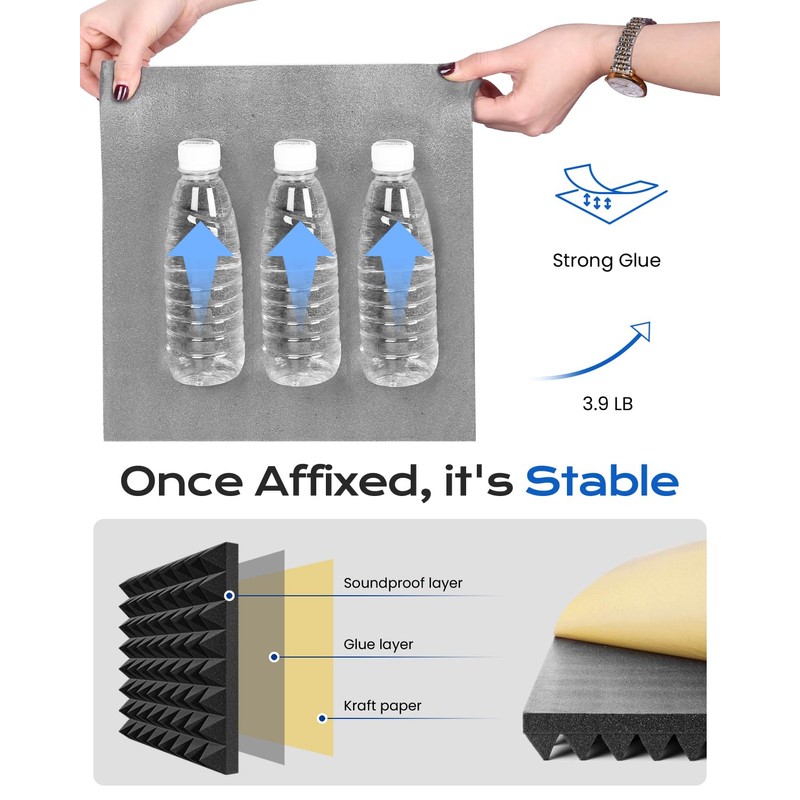 Sonicism 48 Pack Pyramid Sound Proof Foam Panels with Self-Adhesive, 12" X 12" X 1" Acoustic Panels of High Density, Soundproof Wall Panels Fast Expand, Sound Absorption and Decoration Black/Gray