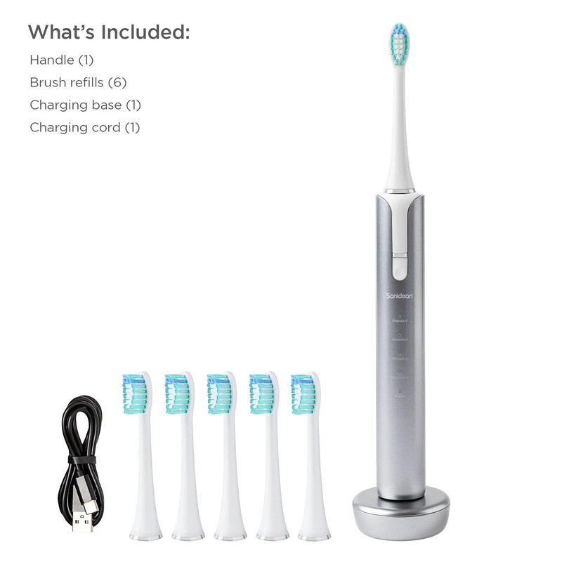 - [What's Included] The Soniclean Lux Sonic Toothbrush with 6 Brush Heads includes 1 toothbrush handle, 6 Soniclean toothbrush heads, and 1 USB charger.