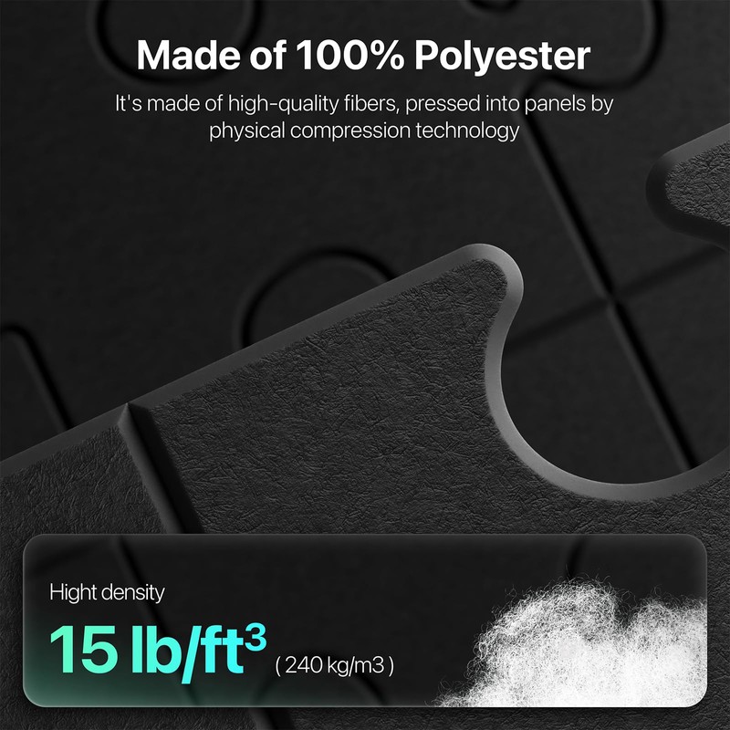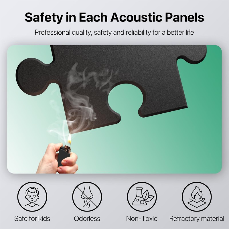 - Safety First: Safety and sustainability are at the core of our acoustic wall panels. Made from 100% high-density polyester fiber, these panels are eco-friendly, odorless, and non-toxic, making them safe for you and the environment. Additionally, these acoustic panels are flame retardant and have passed rigorous safety tests, giving you the peace of mind that you're getting acoustic panels that are both effective and safe. Choose our sound proof panels for walls for superior soundproofing without compromising safety or sustainability.