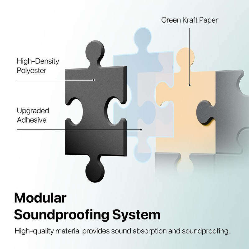 - DIY-Friendly for Creative Spaces: Unleash your creativity with our DIY-friendly jigsaw soundproof wall panels. Available in a variety of colors and designs, these versatile panels can be easily cut and shaped to meet your unique soundproofing needs. Whether you want to enhance the aesthetics of your space or customize your soundproofing solution to fit your décor, the possibilities are endless with our panels. Turn your walls into works of art while enjoying superior noise reduction.