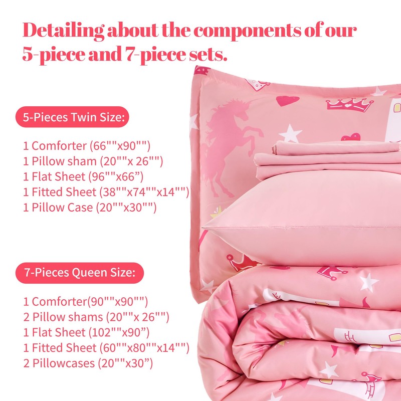 Sonive Cute Comforter Set Queen/Full Size, Cooling and Warm Bed Set Fluffy, Lightweight Bedding Set & Collections, Down Alternative 7 Pieces, Castle Party