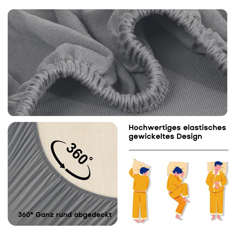 • Optimal fit: the 10 inch extra deep pocket is large enough to hold any mattress with a thickness of up to 30 cm. We offer fitted sheets for standard mattresses, for toppers and for box spring beds. Our fitted sheets fit perfectly and do not slip, thanks to particularly firm elastics. The sheets are wrinkle-free and do not loosen back and forth, so you can sleep all night.