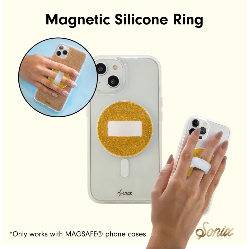 Sonix Magnetic Phone Grip, MagSafe Silicone Ring Loop Grip - Detachable Holder for Hand, Soft MagSafe Grip | Glitter Gold