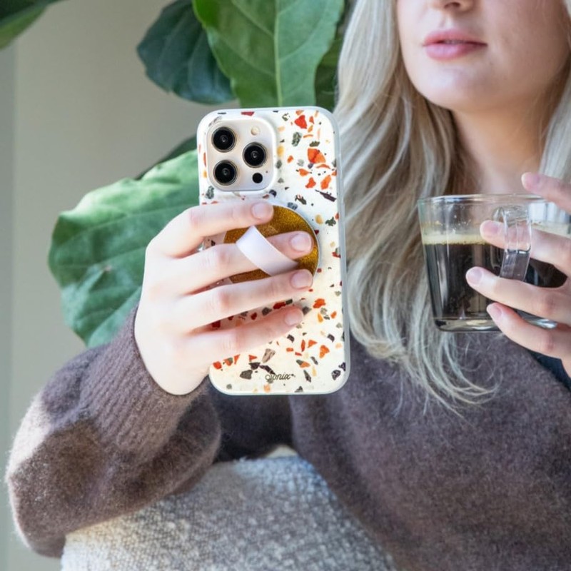 Made for MagSafe. Put a ring on it! The Sonix MagSafe compatible phone ring grip makes it easy to keep track of your phone. This magnetic phone grip automatically aligns with your phone’s built-in MagSafe magnet to form a secure attachment. This cute phone holder for hand has a comfortable soft silicone loop for use with MagSafe iPhone 12, iPhone 13, iPhone 14, iPhone 15, and iPhone 16 series phones and MagSafe compatible phone cases only.