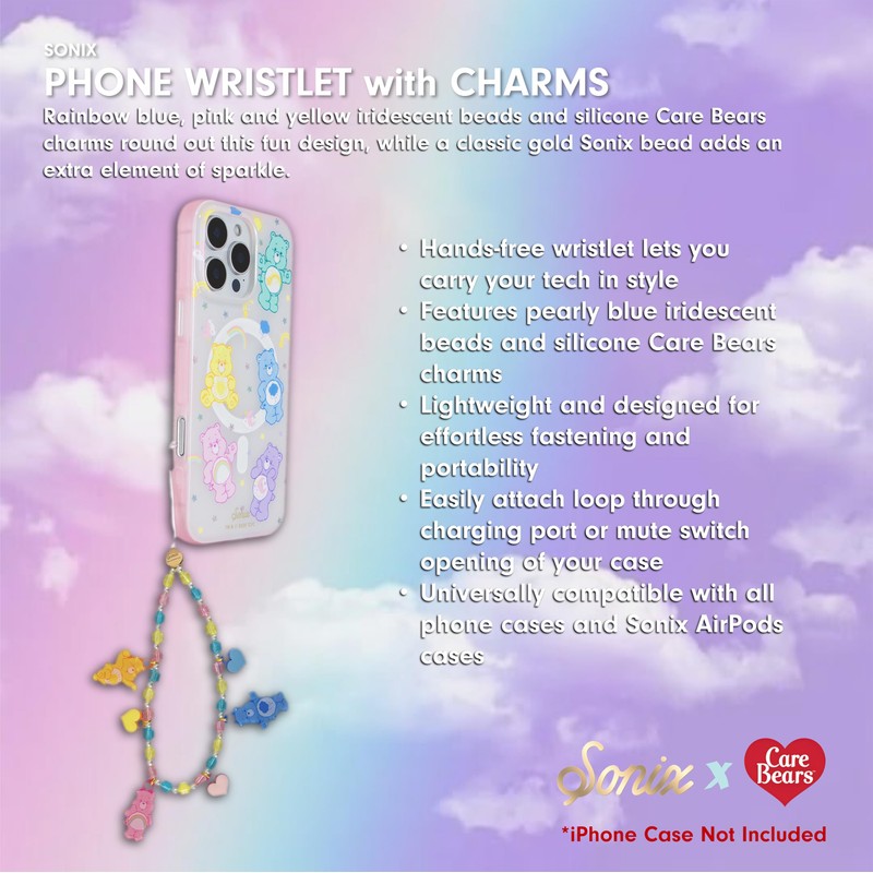 Sonix x Care Bears Beaded Phone Charm | Beaded Wristlet, Universal Phone Strap, and Detachable Cell Phone Lanyard with Silicone Charms | Care Bears Pastel