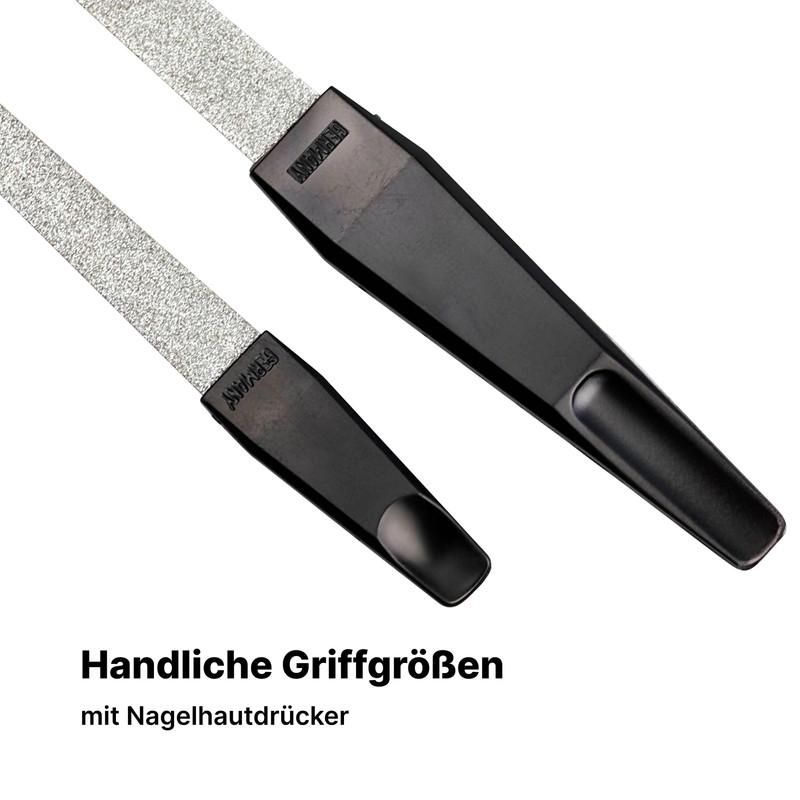 • Various lengths - A selection of different sizes is available to achieve an optimal manicure and pedicure result. The 13 cm file is usually used as a "standard size" for everyday use