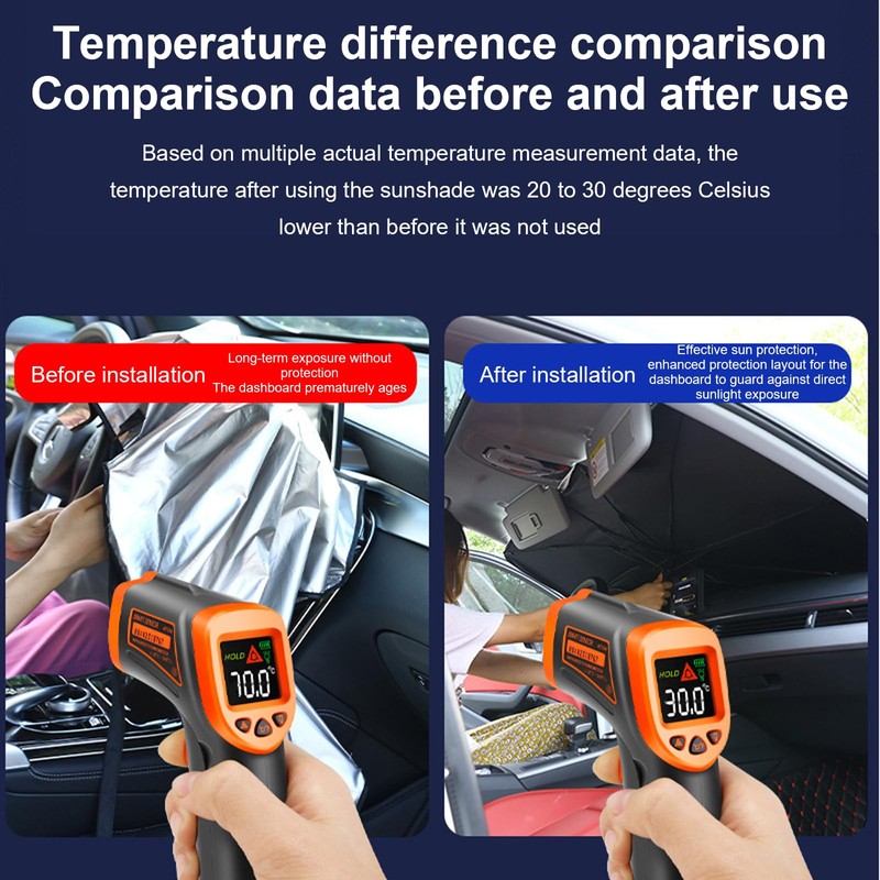 - 【Freundliches Design】 Die Öffnung oben passt zur Windschutzscheibe, um Lücken zu reduzieren. Der Lenkgriff kann den Sonnenschirm reparieren, um zu verhindern, dass das Innenraum rutscht und kratzt. Das kratzfeste Instrumententafel mit 360 °-rotierender Griff, detailliertes Design berücksichtigt sowohl die Sicherheit als auch das Cockpit-Schutz.