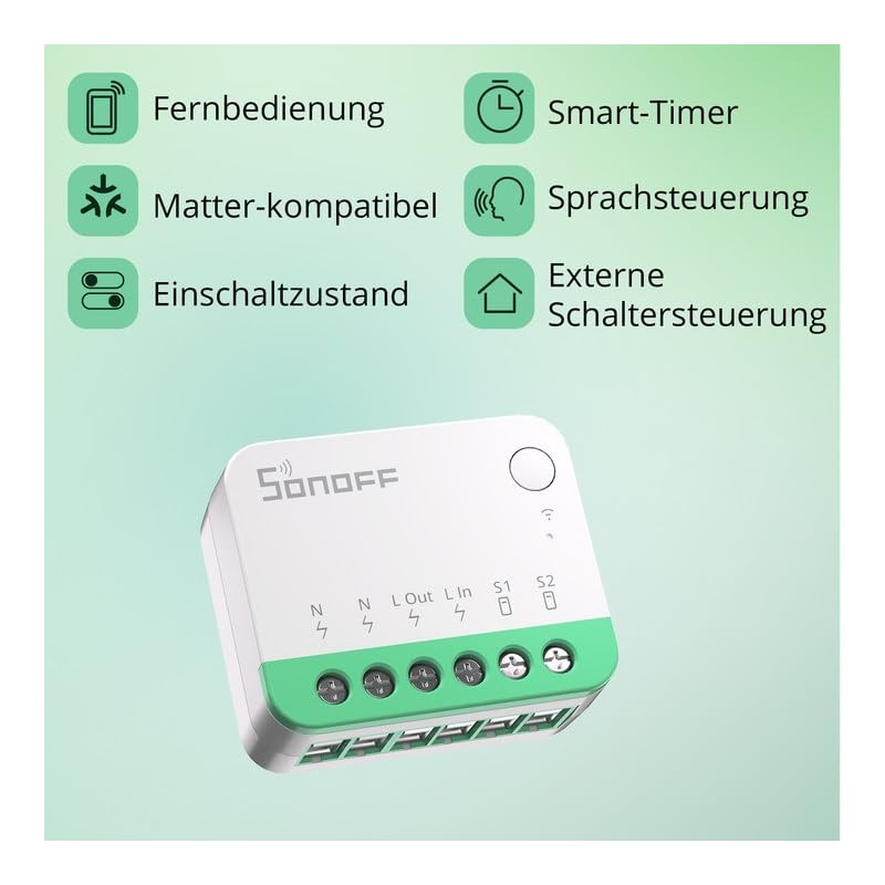 - Matter compatible: The SONOFF MINIR4M Smart Switch is a Matter certified device that works with other brands of Matter devices and can be integrated into Matter enabled platforms such as Alexa, Apple Home, Google Home, etc. Controlling all smart devices from a single app is no longer a dream.