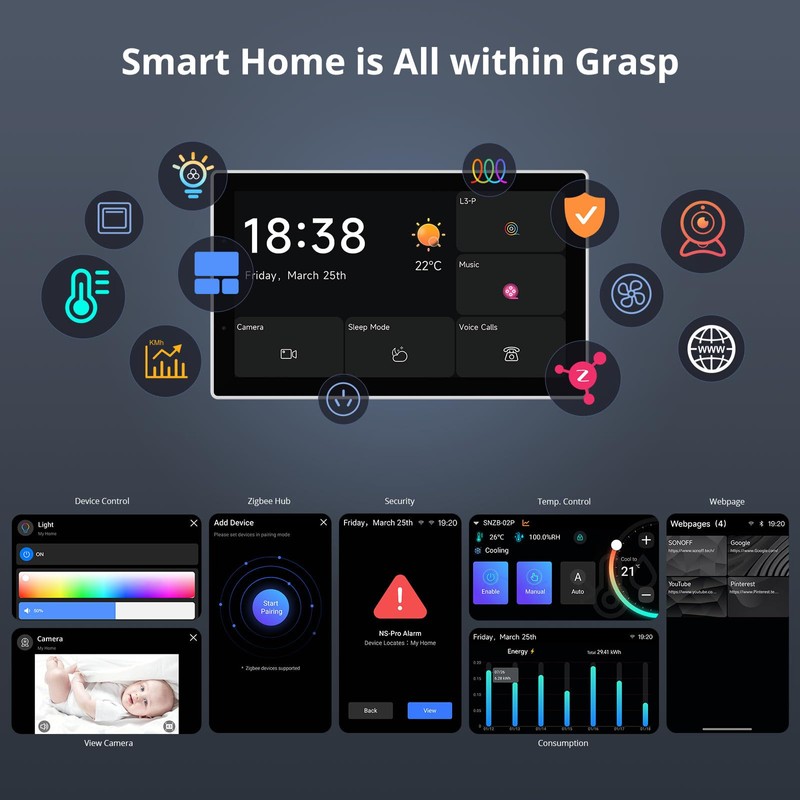 - 【All in One Control Panel With】 Enjoy a larger view with the 4.7-inch display that Control your home with just a tap—whether it’s monitoring energy use, viewing live cameras, adjusting the thermostat, managing your lighting or even browsing the web