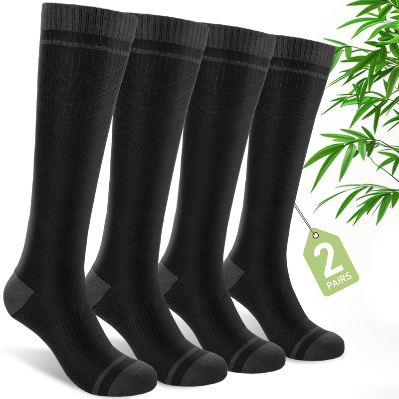 - 80% Viscose for Bamboo: These compression socks are made from 80% natural viscose for bamboo, offering excellent breathability, moisture-wicking, and softness. Warm in winter and cool in summer, making them ideal for individuals with sensitive skin or for prolonged wear. The viscose fibers absorb 3-4 times more moisture than cotton!
