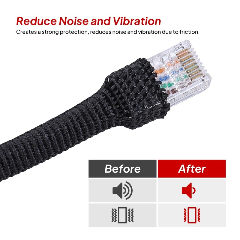 - Noise and Vibration Reduction:The braided shrink sleeve can be shrink to half the original diameter,and the hose is firmly wrapped;as a result,noise and vibrations caused by friction between hoses and pipes are effectively reduced