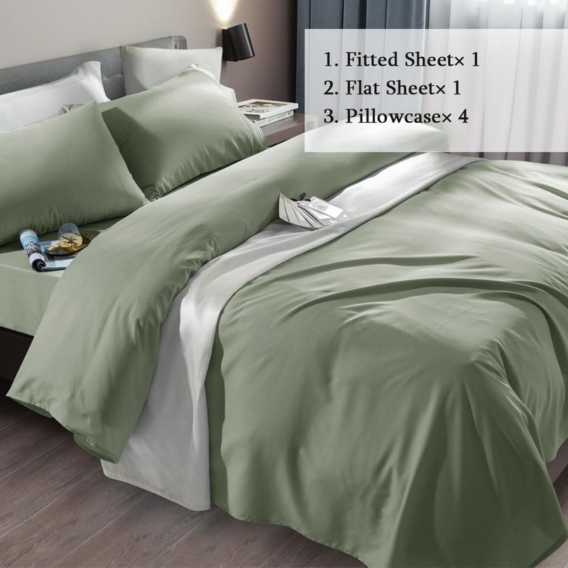 SONORO KATE Bed Sheet Set Super Soft Microfiber 1800 Thread Count Luxury Egyptian Sheets Fit 18-24 Inch Deep Pocket Mattress Wrinkle-6 Piece (Sage, King)