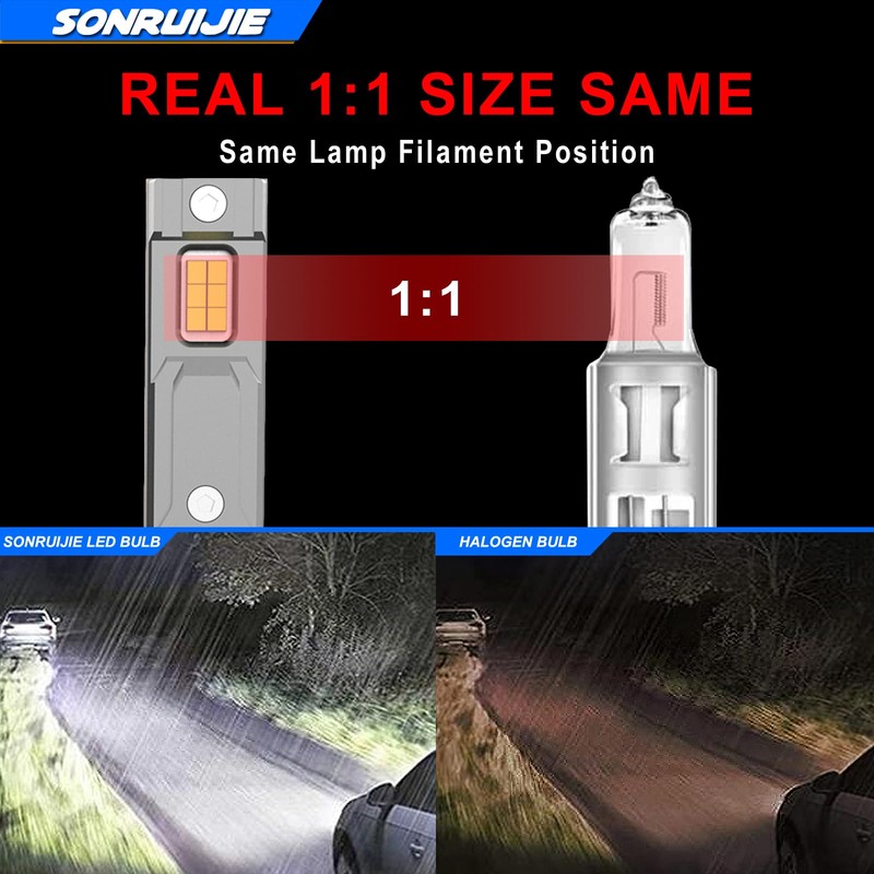 • 【600% BRIGHTER】H1 LED headlight bulbs are made of high quality LED chips with 180W, 36000LM per pair, 6000K white. Super focused beam pattern design provides wider and farther lighting range which is 6 times brighter than your original halogen bulb.Enjoy a brighter and safer driving experience with SONRUIJIE LED headlight bulbs