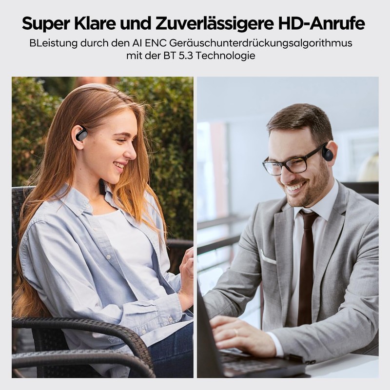 - AI intelligent ENC noise cancellation algorithm based on Bluetooth 5.3 version: The Sontinh OpenAir allows high-resolution calls by intelligently reducing ambient noise and maintaining a stable connection up to 20 metres away thanks to the optimised connection performance.