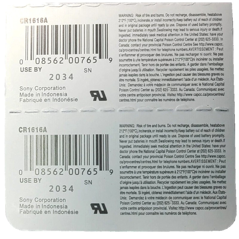 Sony CR1616 SONY MURATA 2PK 3V LITHIUM (GREAT EXP 2034) DL1616 ECR1616 FREE SHIPPING