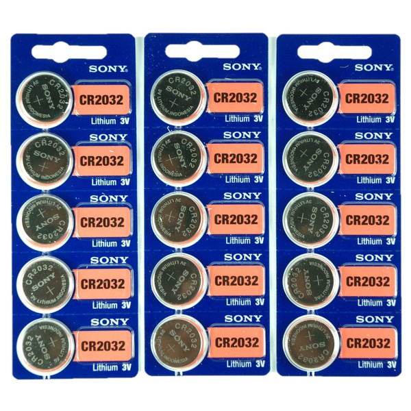 Sony CR2032 3V Lithium 2032 Coin Battery, 15 Pack